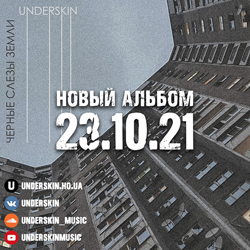 02.10.2021 - Группа UNDERSKIN представит публике свой новый, шестой студийный альбом с ярким названием "Чёрные слёзы Земли" 23 октября. В честь данного события вечером того же дня состоится онлайн концерт - презентация альбома, зрителями которого в прямом эфире смогут стать поклонники группы со всего мира. Концерт будет транслироваться на странице UNDERSKIN в Facebook. Попасть на живой концерт - презентацию нового альбома можно будет на следующий день, 24 октября в Бочка PUB. Кроме UNDERSKIN в концерте по традиции примут участие друзья группы. Атмосфера обещает быть очень тёплой, собственно, как и всегда. Ждать осталось совсем не долго! 05.02.2021 - Друзья! 6 февраля мы опубликуем во всемирной паутине наш новый сингл "Гоа". Это послужило поводом организовать первый в биографии UNDERSKIN онлайн-концерт - презентацию. Я выступлю для вас сольно через экраны ваших компьютеров и смартфонов с камерной программой, состоящей в основном из тех песен, которые обычно на концертах мы не исполняем и, конечно же, будут новые песни, среди которых виновница торжества - песня "Гоа". Для меня это первый подобный опыт. Я очень волнуюсь и надеюсь на вашу поддержку. Увидимся в эфире Facebook Live!:) Алексей Малышко