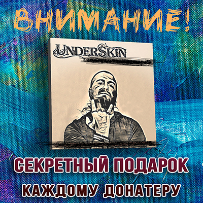 31.10.2022 - В честь 22-го Дня Рождения UNDERSKIN, каждый донатер может получить эксклюзивный секретный подарок для самых преданных почитателей творчества проекта! Отправьте любую сумму в поддержку деятельности UNDERSKIN и напишите об этом в директ Facebook или Instagram. 6 ноября, в день онлайн-концерта, вы получите ссылку на очень необычный трек, который не будет доступен другим пользователям сети. Ссылка будет активна 7 дней. Те, кто изъявят желание отправить донат во время онлайн-концерта, получат ссылку на свой подарок после завершения трансляции! Приват Банк: 5457082237441790 До встречи 6 ноября в прямом эфире!:)